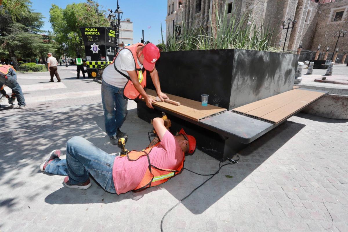 Saltillo, Coahuila de Zaragoza, a 6 de septiembre de 2023.- Con la colocación de mobiliario urbano, así como el retiro de postes y cableado que estaban pendientes, el proyecto Paseo Capital, en el Centro Histórico de Saltillo, registra un 90 por ciento de avance, por lo que pronto estará listo, informó Virgilio Verduzco Echeverría, Director de Infraestructura y Obra Pública del municipio.