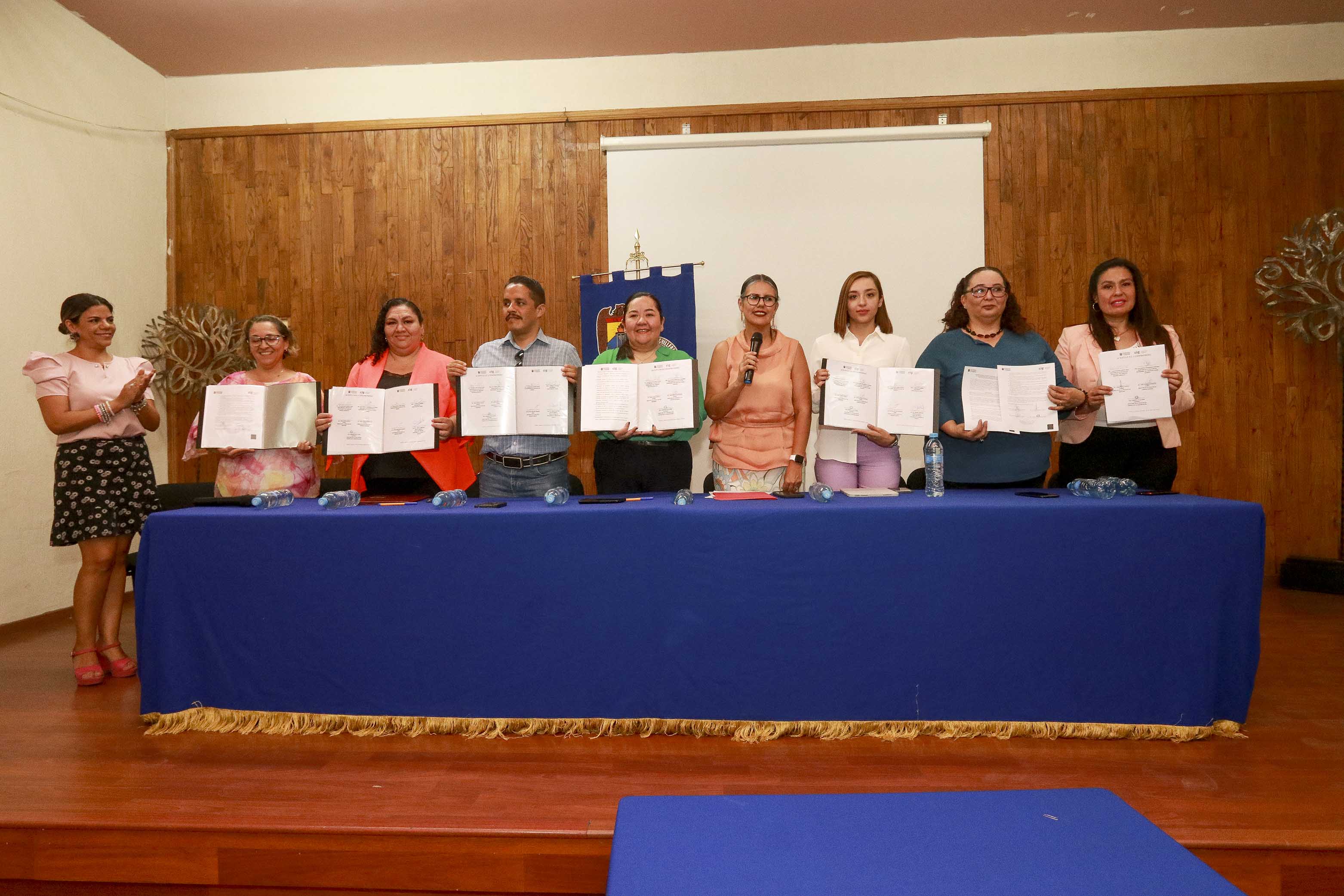 En el auditorio de la Preparatoria Mariano Narváez, signaron el documento, la coordinadora de Igualdad de Género, Magdalena Jaime Cepeda y los titulares de las Facultades de Comunicación, Ciencias Sociales, Medicina, Enfermería y la Preparatoria “Dr. Mariano Narváez González”, Gabriela de la Peña Astorga, José Gustavo González Flores, en representación de Jesús Ángel Padilla Gámez, Jessica Sánchez, Eva Kerena Hernández Martínez y Claudia Elena García Vega, respectivamente.