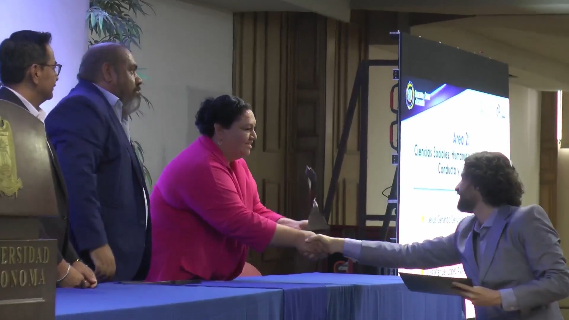 En el área de Ciencias Sociales, Humanidades y de la Conducta: resultó galardonado el Dr. Hiram Reyes Sosa de la Facultad de Psicología; en el área de Biología y Química, Dra. Mónica Lizeth Chávez González, de la Facultad de Ciencias Químicas; en Físico Matemáticas e Ingeniera, Dra. Valeria Soto Mendoza del Centro de Investigación en Matemáticas Aplicadas y en el área de Medicina y Ciencias de la Salud, Dra. Edna Idalia Paulina Navarro Oliva de la Facultad de Enfermería “Dr. Santiago Valdés Galindo”.