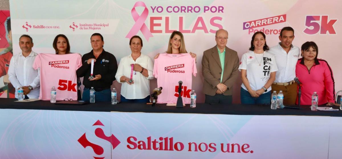 Saltillo, Coahuila de Zaragoza, a 27 de septiembre de 2023.- En el marco del Día Mundial contra el Cáncer de Mama, el Gobierno Municipal de Saltillo llevará a cabo la segunda edición de la Carrera Poderosa 5K “Yo corro por ellas”, de la cual lo recaudado en inscripciones será donado íntegramente a las asociaciones Casa Rosa y Grupo Reto.