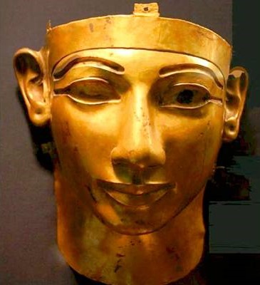 - Estupenda máscara de oro de la princesa Thuyu de la XVIII dinastía (1370 a.C.) Es la abuela de Akhenaton.