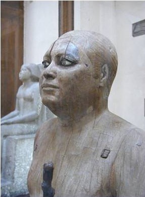 - Ka-aper. V dinastía. Madera. Los ojos de cristal de roca y alabastro. Emocionante.
