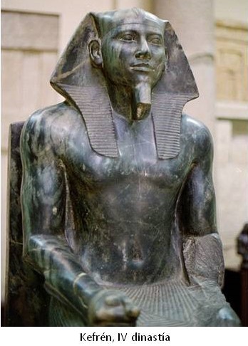 - Faraón Kefrén. IV dinastía. Piedra (dionita). Es negra con vetas blancas y grises.