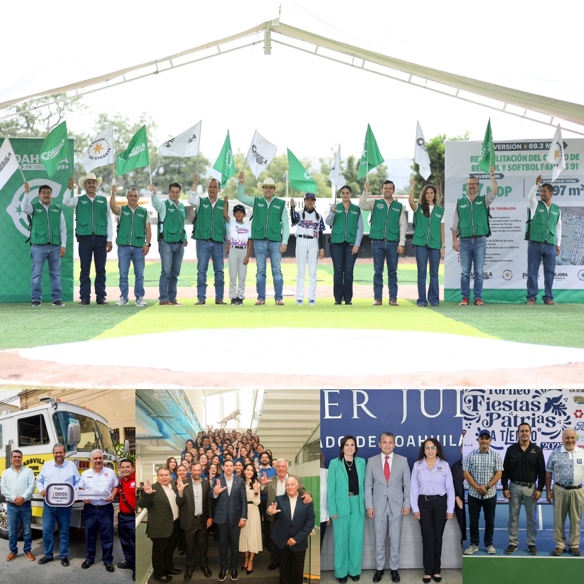 "Cerramos la semana en el hermoso pueblo mágico de Parras, donde junto con mi amigo el alcalde Fernando Orozco arrancamos el programa "Obras Sociales a Pasos de Gigante", con una inversión de 69.3 millones de pesos en pavimento, agua, drenaje e infraestructura educativa. De igual manera, entregamos la rehabilitación del campo de Béisbol y Sóftbol Parras 91, que lo van a disfrutar miles de parrenses. ¡Seguimos cumpliendo y avanzando con todo!", destacó el gobernador.