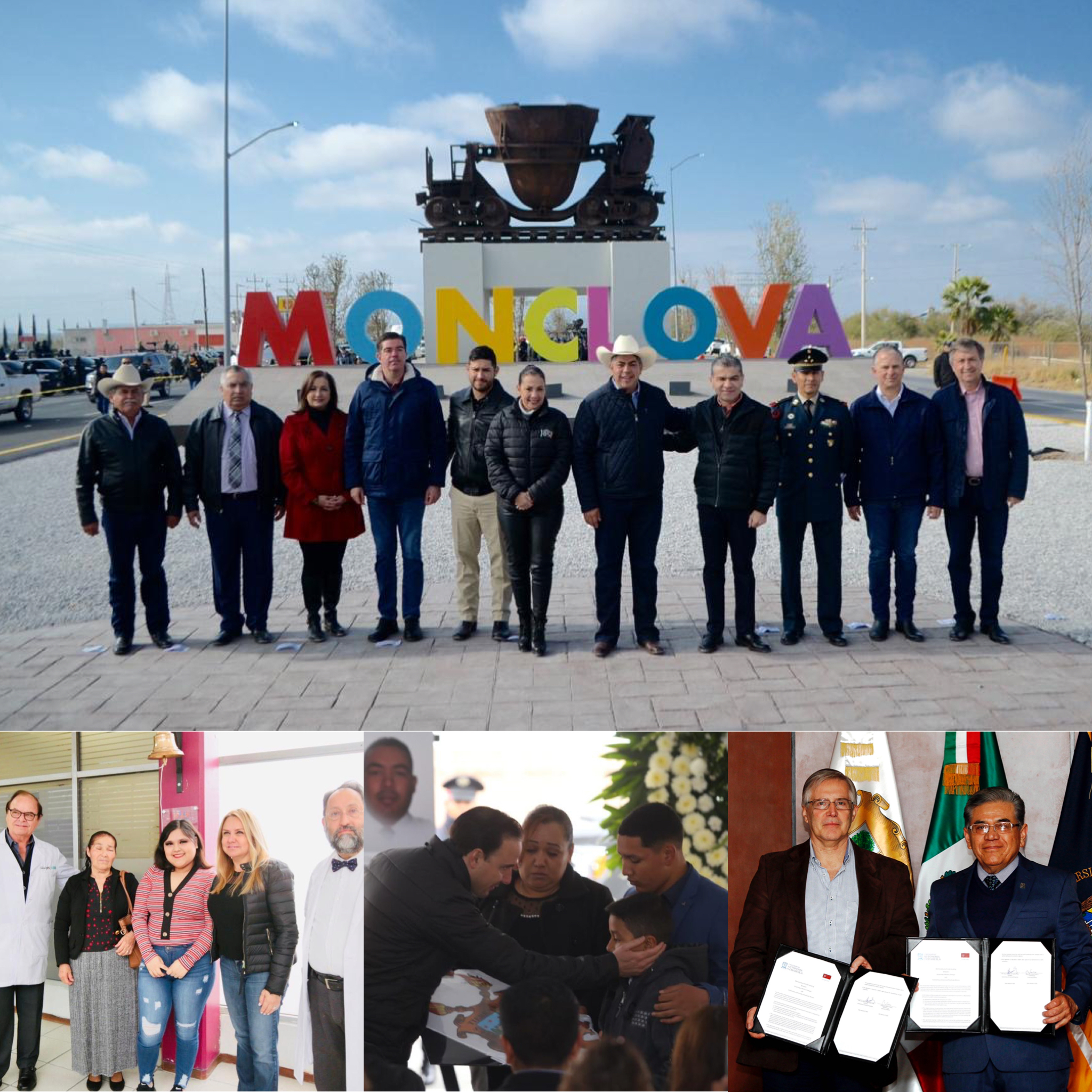 Luego de realizar el tradicional corte de listón de las letras emblemáticas de “Monclova” que dan la bienvenida a quien proviene del norte a sur, y que se encuentran ubicadas sobre la Carretera Federal 57 kilómetro 10.5 “Acceso Norte”, donde la inversión supera los 10 millones 305 mil 496 pesos, hizo la entrega de 6 certificados a elementos de la Policía Municipal.