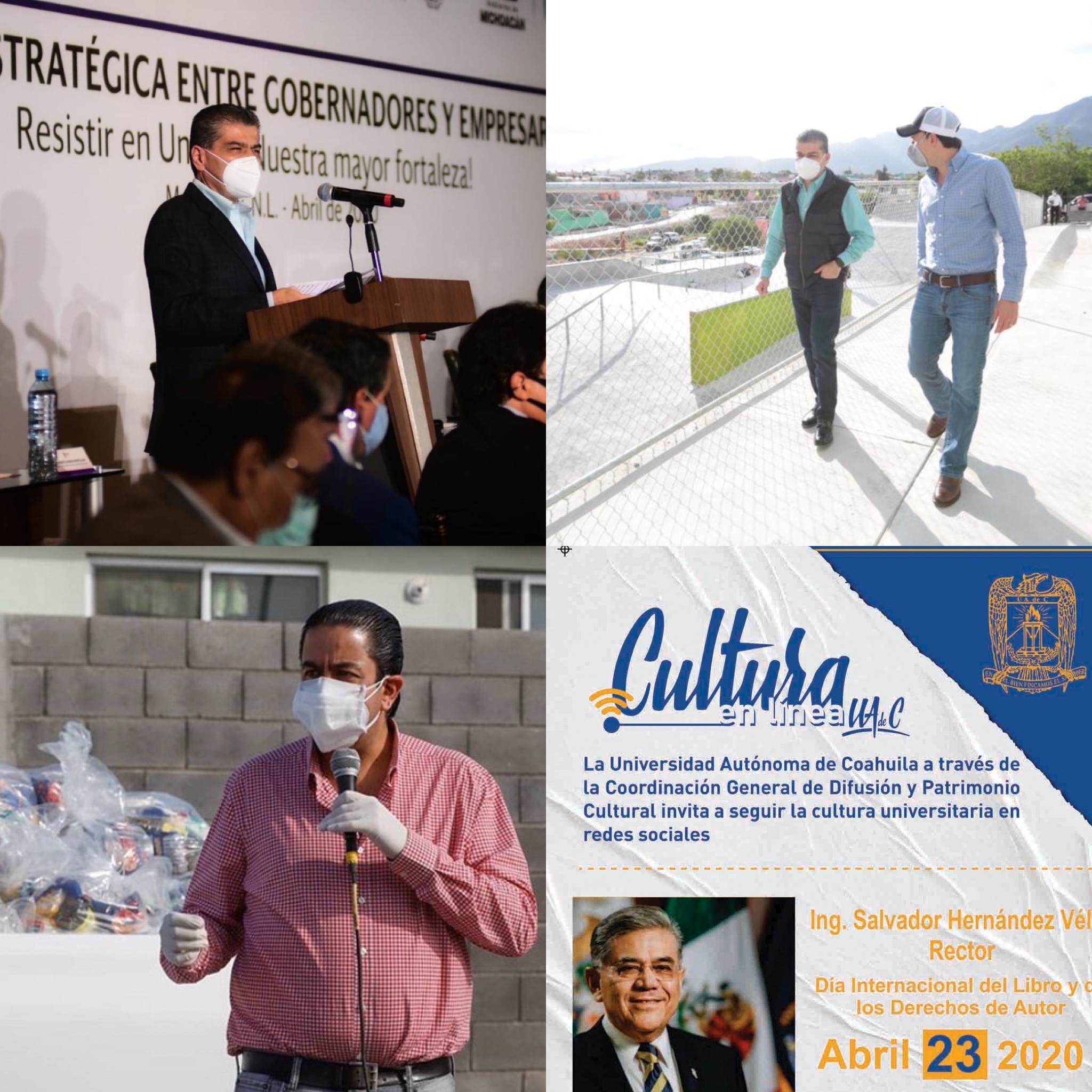 Bajo las circunstancias del distanciamiento social y el QuédateEnCasa debido a la contingencia sanitaria por el COVID-19, del 23 de abril al 30 de mayo los universitarios ofrecerán alternativas culturales en línea a través de las redes sociales en Facebook: @Universidad Autónoma de Coahuila @dpc.uadec; twitter: @UAdeC @dpcuadec e Instagram @uadec_ y @dpcuadec.