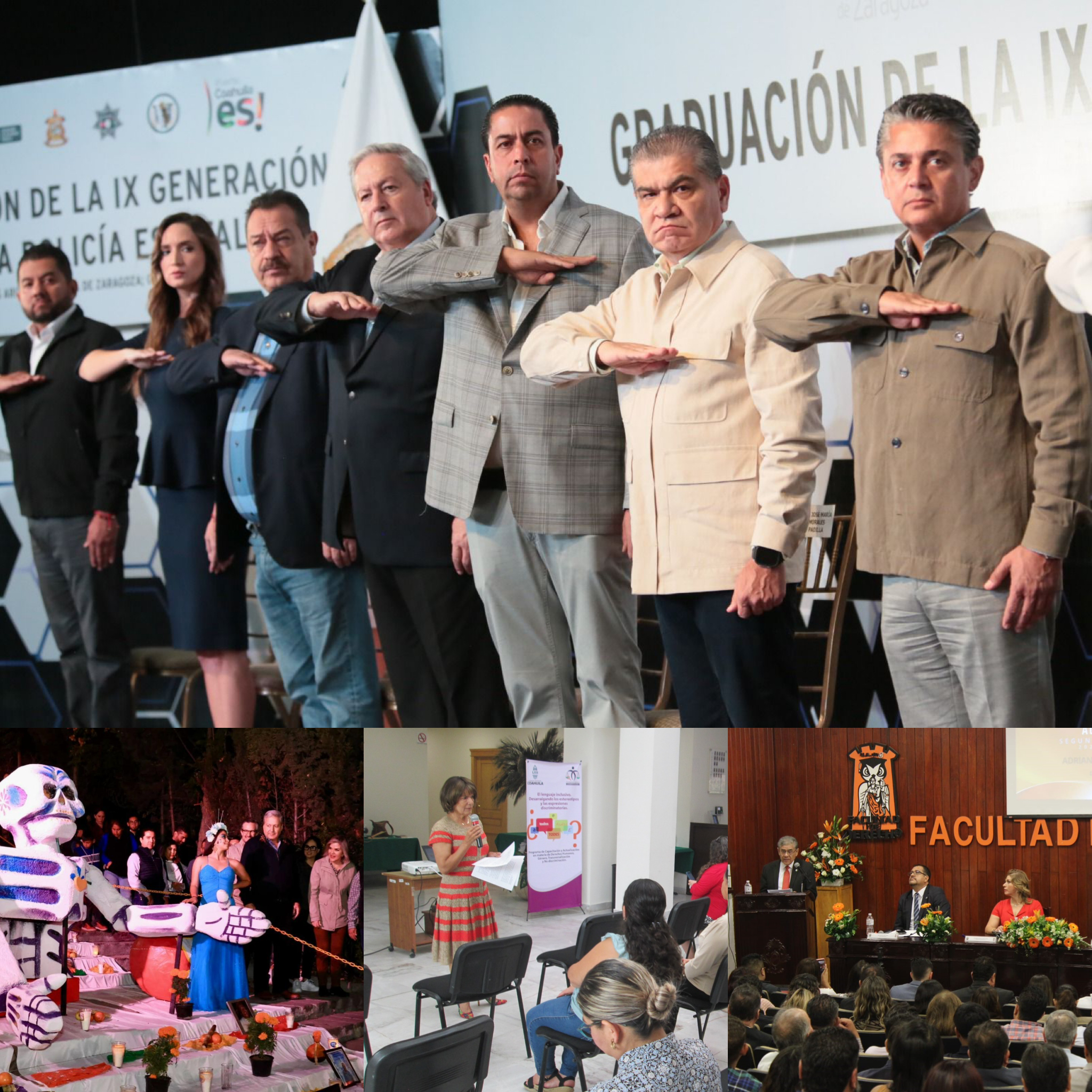 Por su parte, Sonia Villarreal Pérez, titular de la Secretaría de Seguridad Pública, informó que durante el sexenio del gobernador Miguel Riquelme se incrementó en un 50 por ciento el estado de fuerza en la entidad; se han graduado nueve generaciones y actualmente está en formación la décima, la cual estará lista para el servicio las primeras semanas de diciembre.