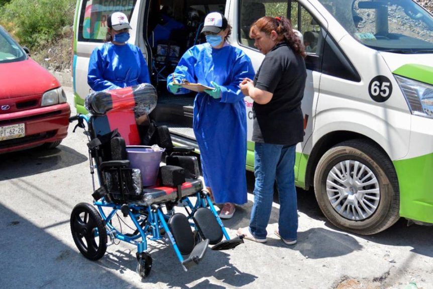 Por instrucciones del alcalde Manolo Jiménez, personal del DIF Saltillo, con las medidas sanitarias correspondientes, llevó hasta el domicilio de los beneficiarios aparatos ortopédicos que ya tenían programados entregar, y en seguimiento a la medida #QuédateEnCasa, también les entregaron paquetes de limpieza e información acerca de las medidas preventivas.