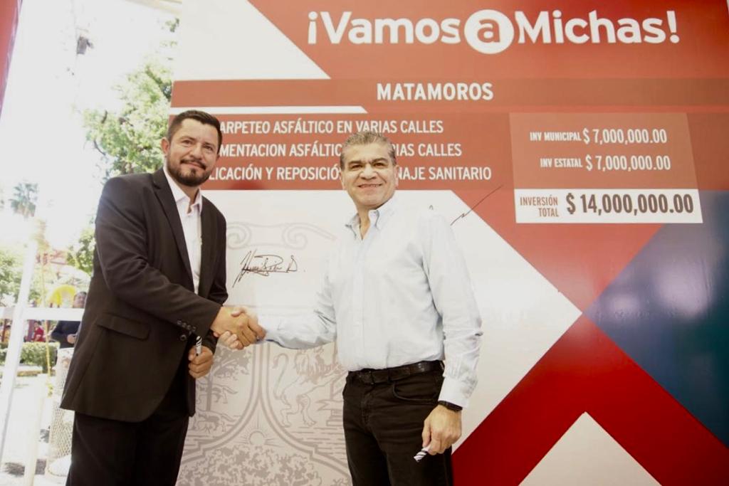 Matamoros, Coahuila de Zaragoza; a 9 de Agosto de 2019.- El Gobierno del Estado inició la mejora urbana con recarpeteo y pavimentación en este municipio; el Ayuntamiento se unió al Programa "Vamos a Michas", con lo que la bolsa de inversión es de 8 millones de pesos, anunció el gobernador Miguel Ángel Riquelme Solís.