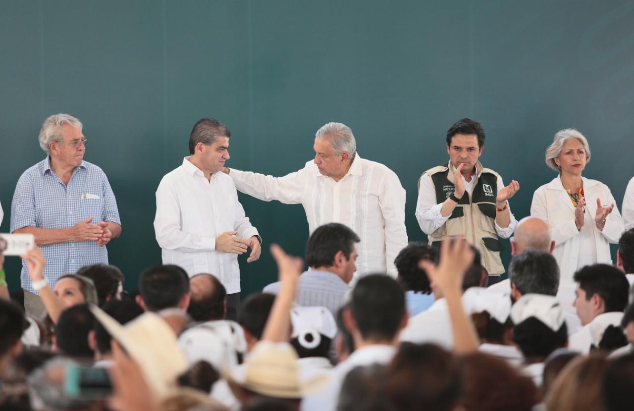 Ramos Arizpe, Coahuila de Zaragoza; a 11 de Agosto de 2019.- El presidente Andrés Manuel López Obrador realizó un reconocimiento "muy especial" al gobernador Miguel Ángel Riquelme Solís, ya que, dijo, ha actuado y se ha comportado a la altura de las circunstancias, y porque siempre ha recibido del Gobernador una actitud de colaboración y de respeto: "Me da mucho gusto estar hoy aquí con él".