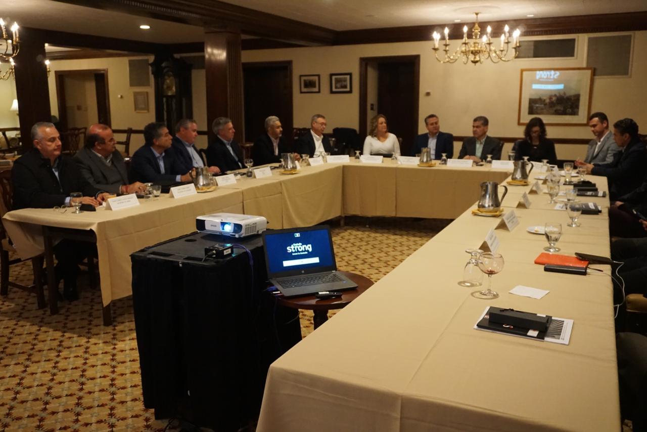 Cincinnati, Ohio, Estados Unidos; a 7 de Noviembre de 2019.- El gobernador Miguel Ángel Riquelme Solís y un grupo de empresarios de esta ciudad abordaron las opciones de que inviertan en Coahuila --ya sea en nuevos proyectos o en expansión de operaciones--, durante una gira comercial en que la delegación coahuilense mostró las oportunidades de negocios que ofrece el estado.