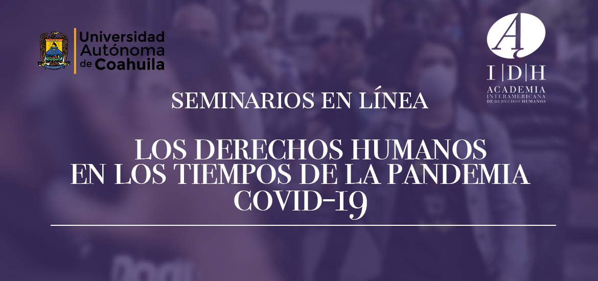 SALTILLO, Coahuila; 24 de abril de 2020.- La Academia Interamericana de los Derechos de la Universidad Autónoma de Coahuila, llevará a cabo el Seminario en Línea "Los Derechos Humanos en los Tiempos de la Pandemia COVID-19" que estará dividido en 11 jornadas, e iniciará el 28 de abril al 9 de julio de 2020 a las 10:00 de la mañana.