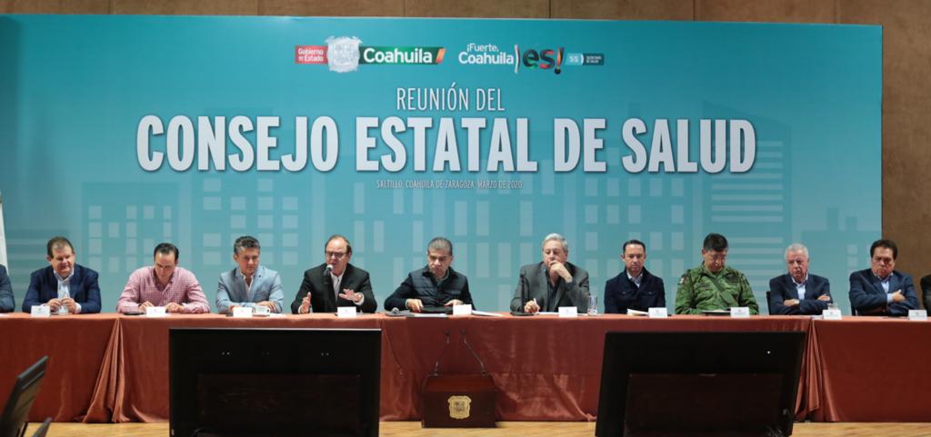Saltillo, Coahuila de Zaragoza; a 18 de Marzo de 2020.- Dentro del Plan Estatal de Prevención y Control del COVID 19, y para mantener a la población informada sobre la evolución de este operativo, el Gobierno de Estado llevó a cabo la reunión del Consejo Estatal de Salud, donde se establecieron las medidas emergentes a aplicar en Coahuila.