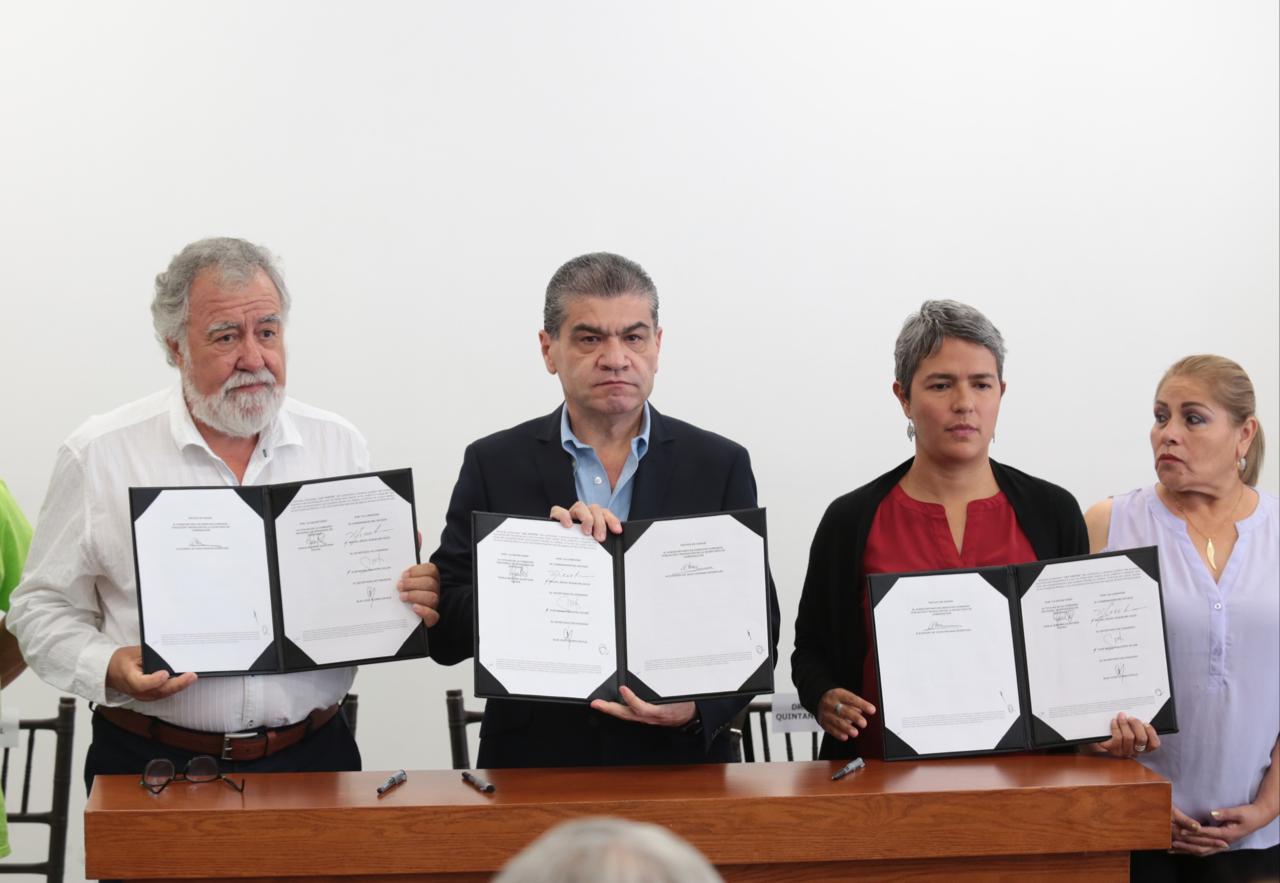 El acuerdo lo firmaron el gobernador Miguel Ángel Riquelme Solís; la Comisionada Nacional de Búsqueda, Karla Quinta Osuna, y el Subsecretario de Derechos Humanos, Población y Migración de la Segob, Alejandro Encinas Rodríguez.
