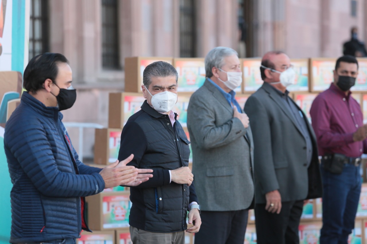 El Alcalde de Saltillo, Manolo Jiménez Salinas, reconoció la labor del gobernador Miguel Riquelme en beneficio de los grupos más vulnerables, así como el arranque de este programa de apoyo alimentario.