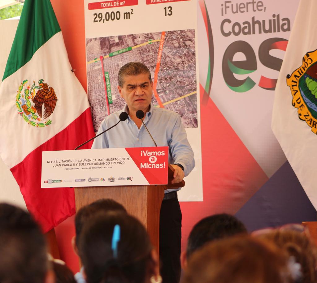 Torreón, Coahuila de Zaragoza; a 3 de Julio de 2019.- El desarrollo de Coahuila sigue firme, y cada día el Gobierno del Estado suma inversiones millonarias para obras de infraestructura en beneficio de miles de familias de todas las regiones, señaló el gobernador Miguel Ángel Riquelme Solís.