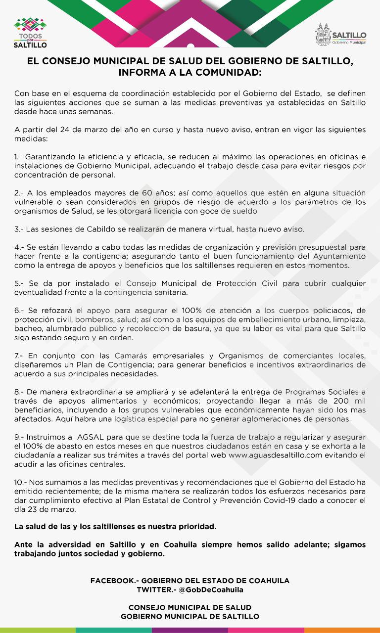 Al respecto, Sonia Villarreal Pérez, titular de la Secretaría de Seguridad Pública del Estado (SSP), afirmó que en Coahuila no se han dado casos de rapiña en tiendas ni tampoco se han detectado convocatorias a cometer saqueos en establecimientos comerciales, ante las medidas de prevención y control para prevenir el COVID-19, que implican la recomendación de que los ciudadanos no salgan de sus casas.